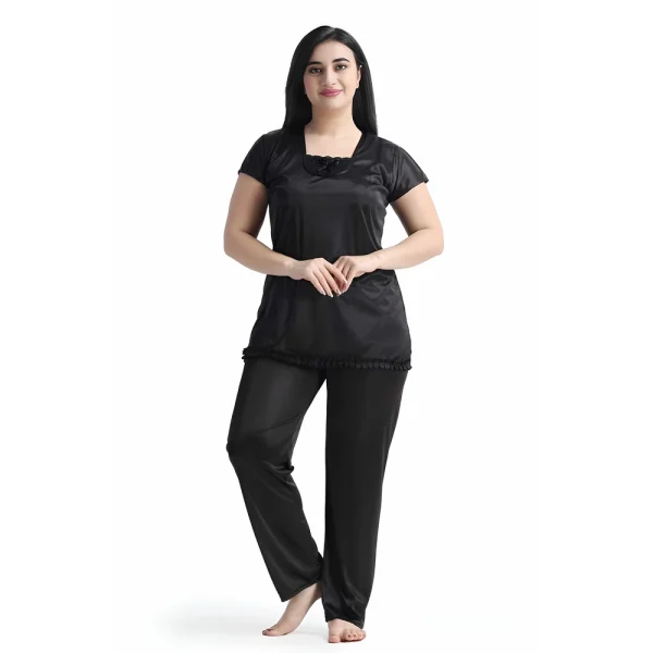 Black – Women’s 2-Piece Satin Nightwear Set – Night Robe & Slip | Free Size