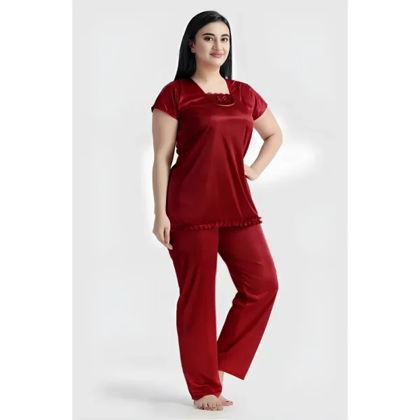 Maroon – Women’s 2-Piece Satin Nightwear Set – Night Robe & Slip | Free Size